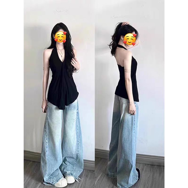 2025 新しい夏のバックレストップルーズノースリーブホットガールベストホットガール純粋な欲望セクシーな無地 y2k 甘い熱