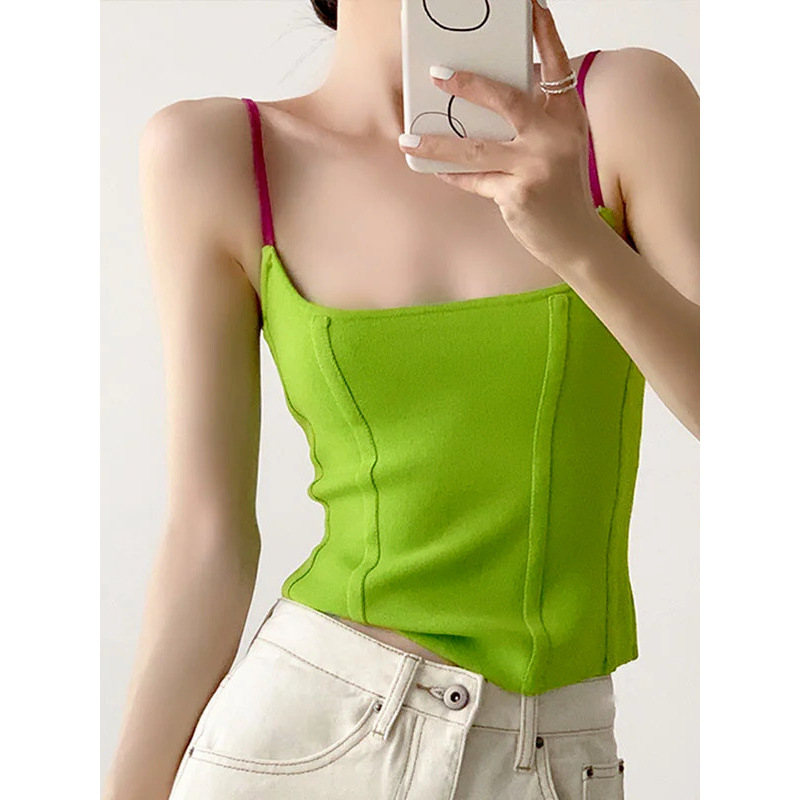 フレンチアボカドグリーンニットベストレディース2025春夏新作Uネックフィッシュボーンハイエンドサスペンダーセクシー