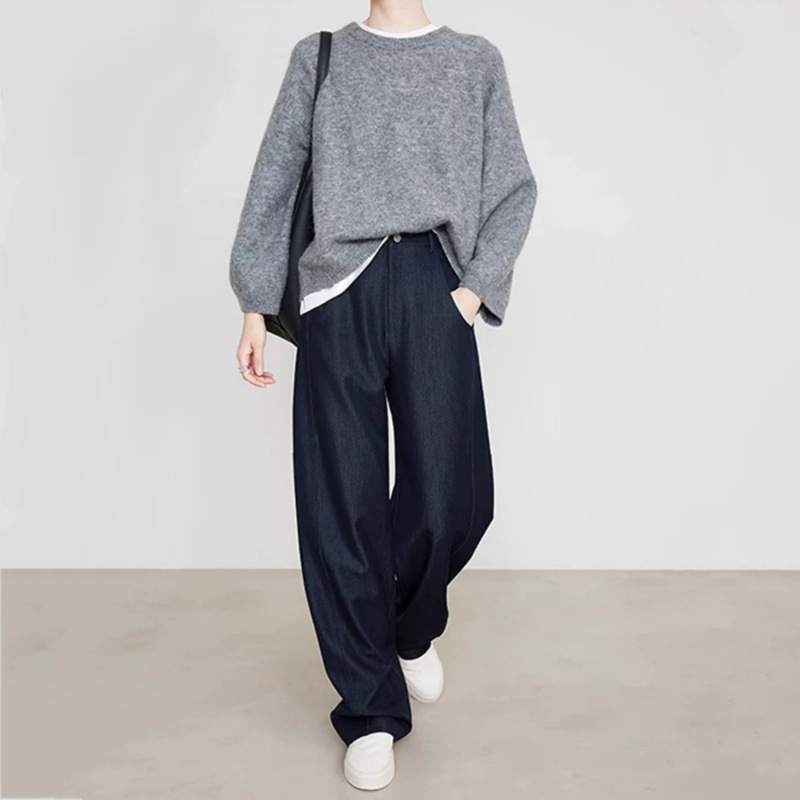 オールドマネースタイルイミテーションデニムワイドレッグパンツ2025春秋新作バナナパンツシンプル通勤ハイウエストスリムカジュアルパンツ