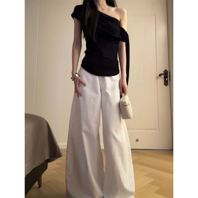 アメリカンホットガールブラックオフショルダー半袖Tシャツレディース夏スリムフィットユニークでシックな美しいショートトップ