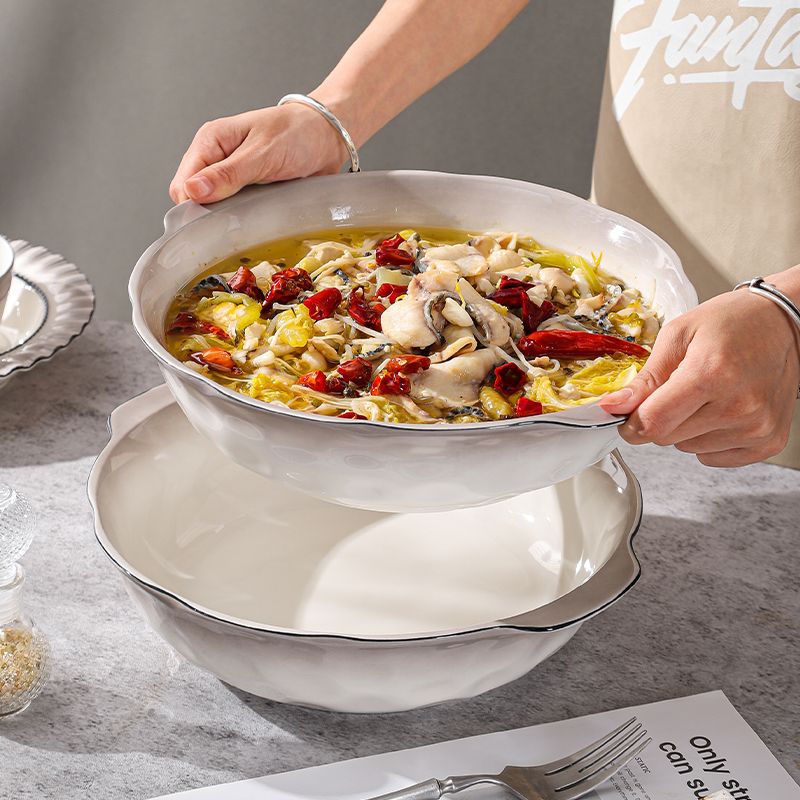 新商品の酸っぱい魚の大きい鉢の双耳の大きいサイズのスープの碗の家庭の12寸の水煮の魚の小さいロブスターの専用の碗のスープの鉢