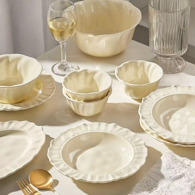 食器セット、家庭用クリーム風、軽い高級感、高級感、見栄えの良い食器、箸、ボウル、新築祝いギフト、2025年新食器