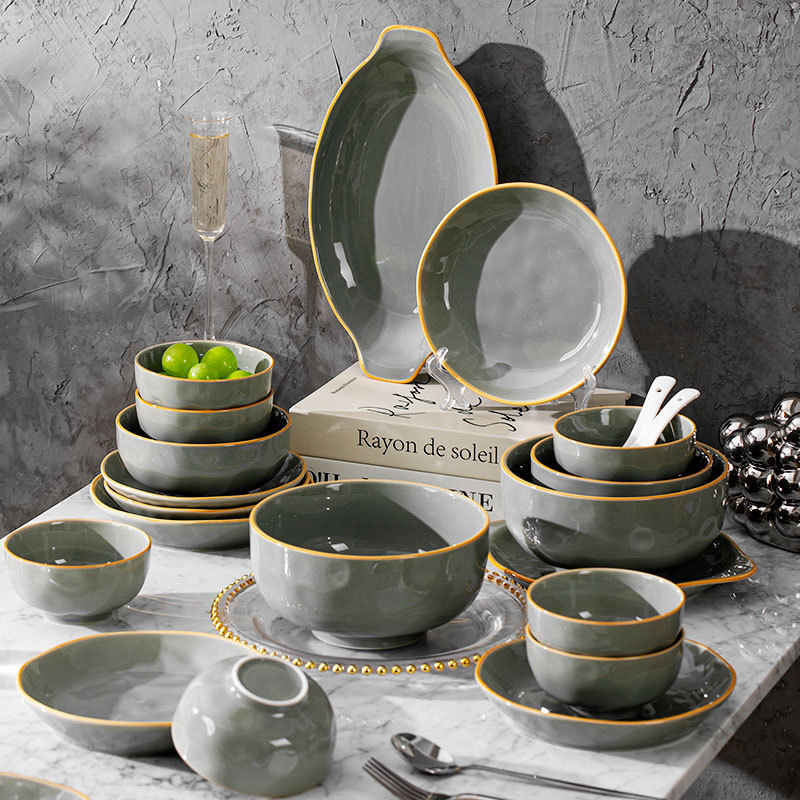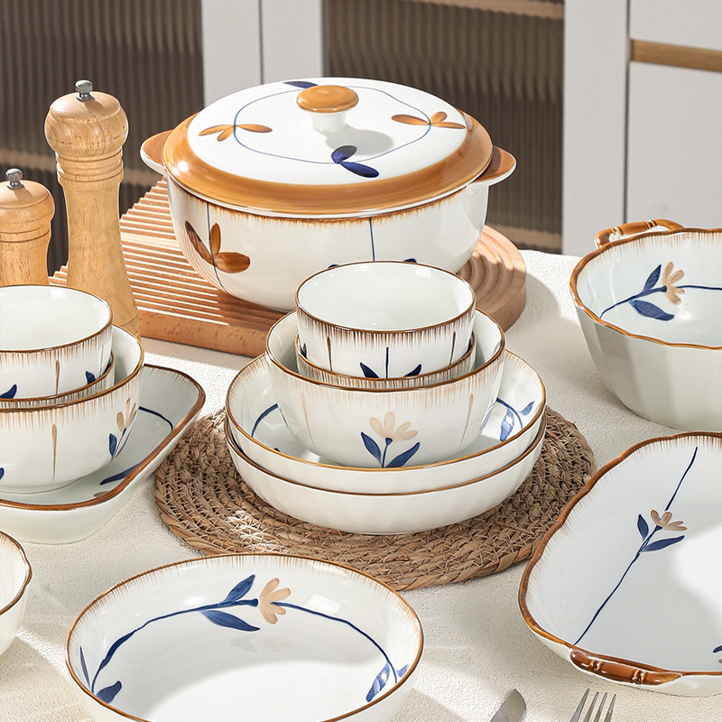 高級ボウル、小清新家庭用陶器ボウルと食器セット、一人用食器、丼、皿、インスタントラーメンボウル