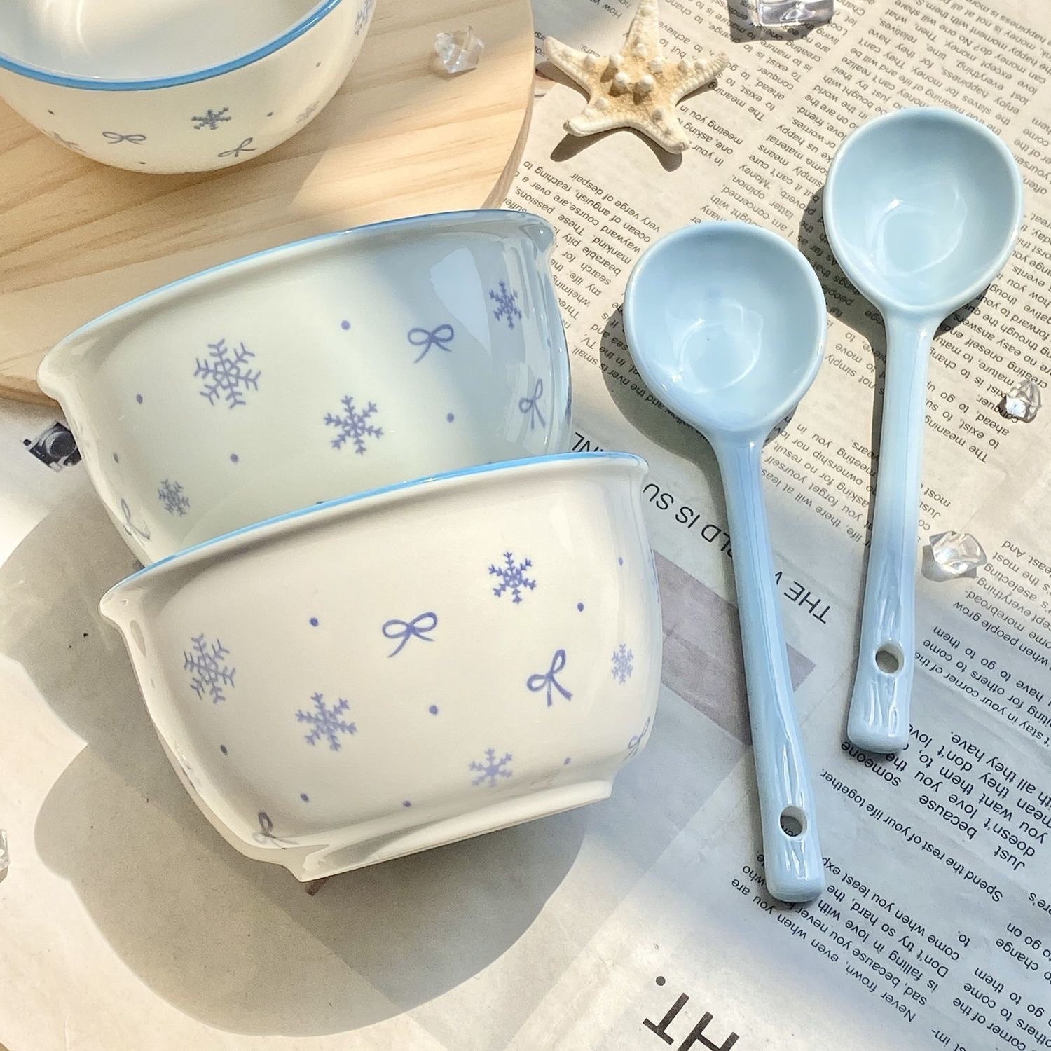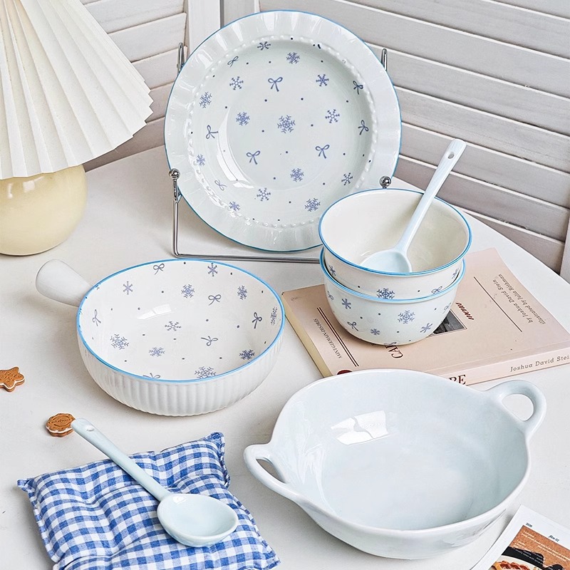 初雪米饭碗少女心ins陶瓷碗盘勺釉下彩高颜值餐具碗碟套装
