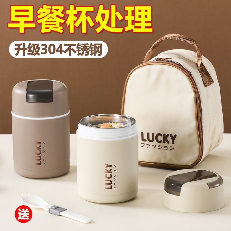 不锈钢早餐粥杯早餐杯带盖勺女生汤壶豆浆便携式外带杯子水杯