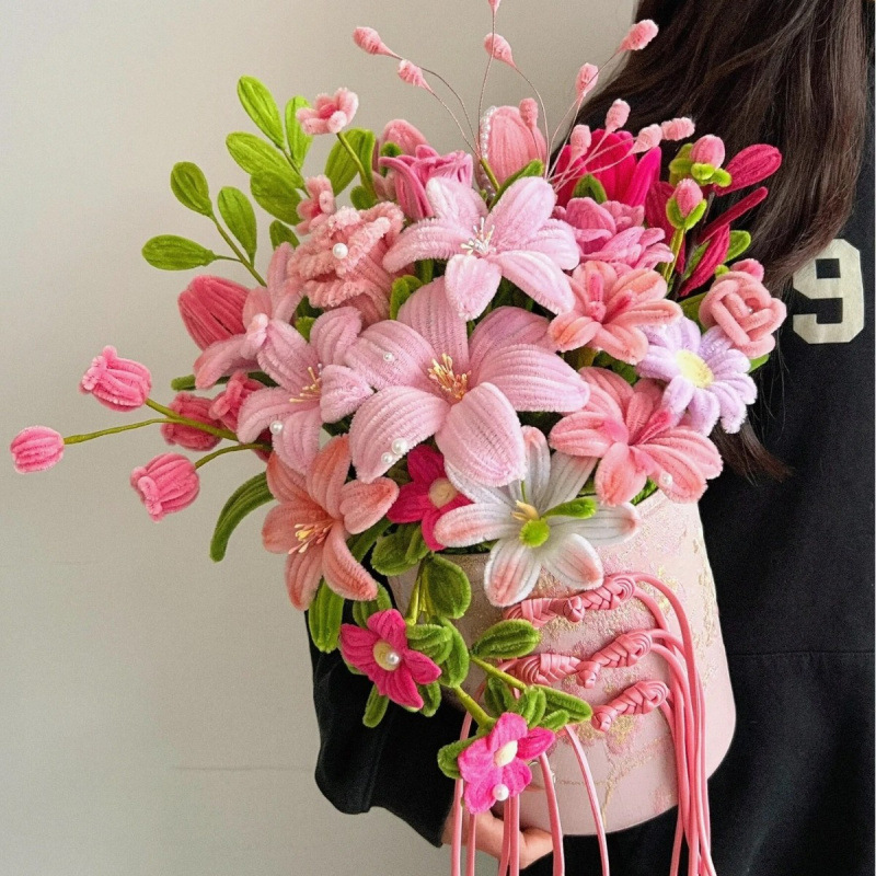 ツイストの花束の完成品は花のバラの手作りのdiy材料を模倣して、自分で作ったものを包んで彼女の親友に送ります。