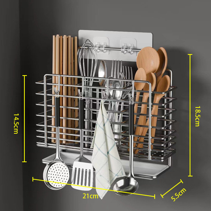 304 ステンレス鋼の箸ケージスプーン収納ボックスキッチン箸ケージ収納ラック壁掛け
