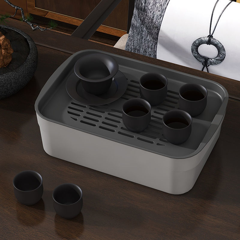 ポータブルティートレイ家庭用小型軽量高級モダン長方形シンプルなティーテーブル中国風大型排水トレイティーセット