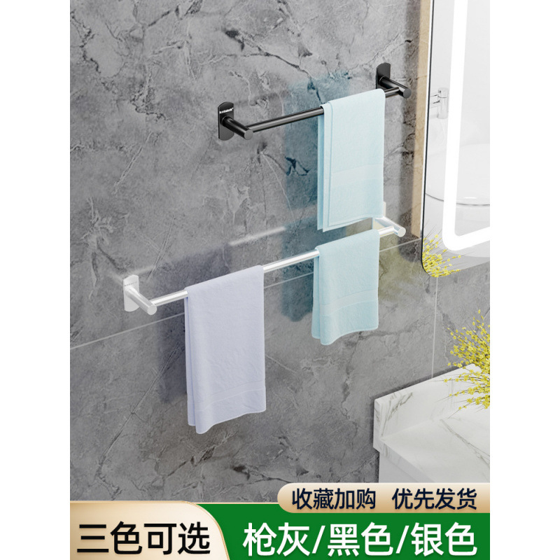 タオルラックパンチフリーシングルロッドタオルバーガングレー浴室トイレ収納ラックキッチン吊りロッドバスタオルラック