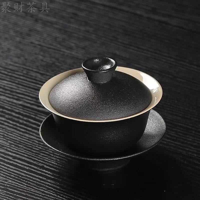 黒禅風茶碗、黒陶蓋、茶碗、茶器、手掴み急須、三才杯、粗陶器