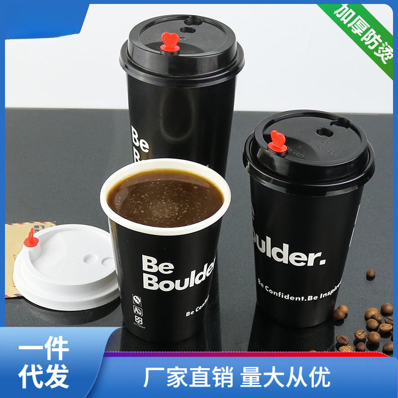 一次性黑色奶茶纸杯加厚英伦防烫热饮咖啡杯只带盖送吸间