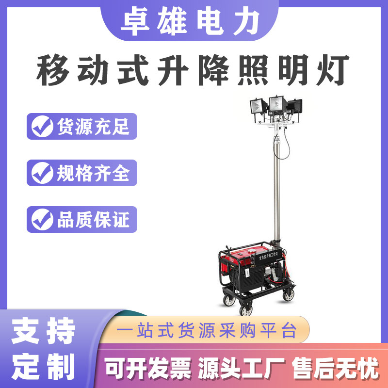 移動式昇降照明灯台屋外夜間移動式ガソリン照明灯気動昇降防水照明車