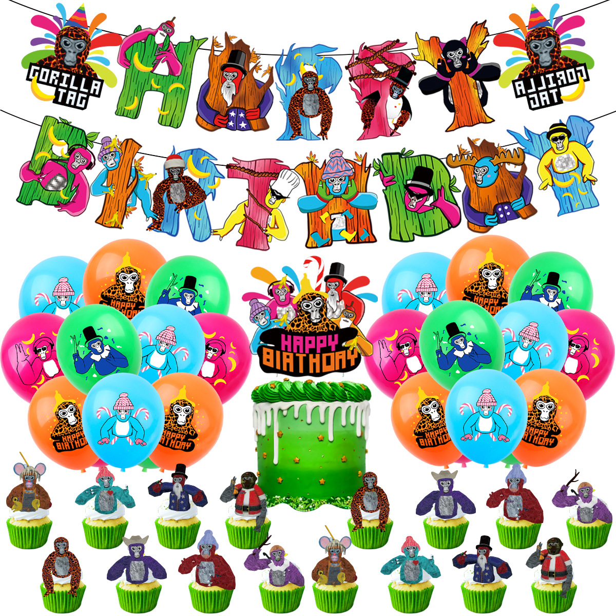 ゴリラtagテーマ誕生日パーティーゴリラvrゲーム旗風船ケーキ装飾セット