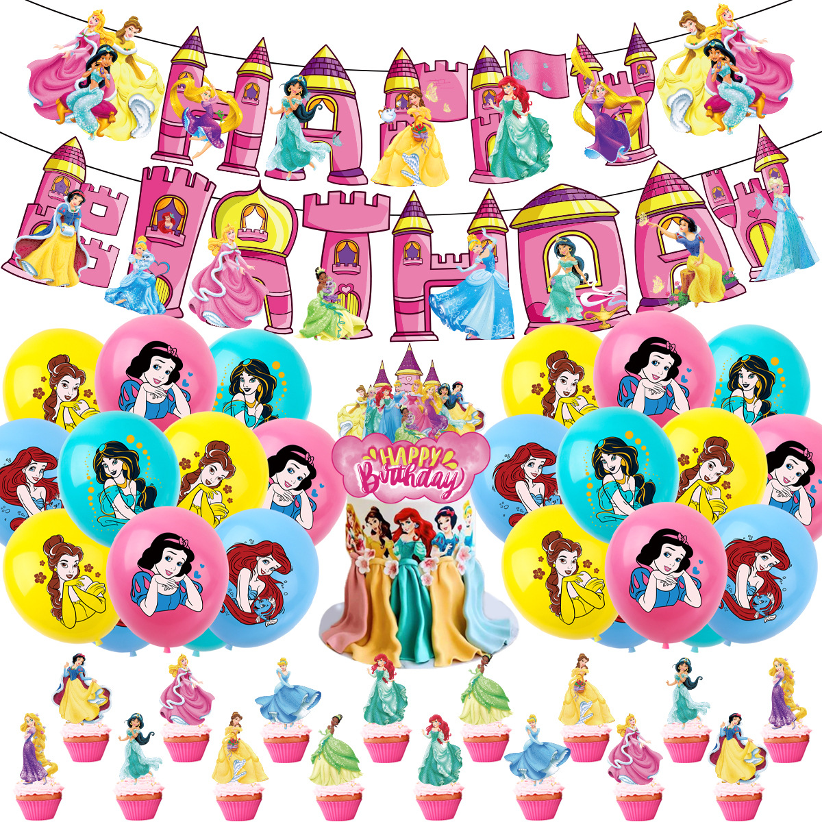 6つの王女のテーマの子供の誕生日パーティー用品は旗の横断幕を引っ張ります。