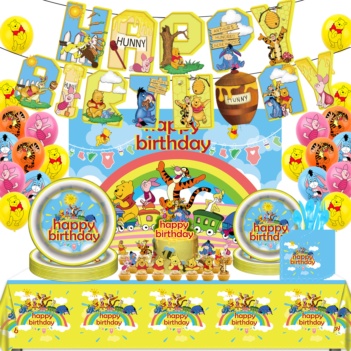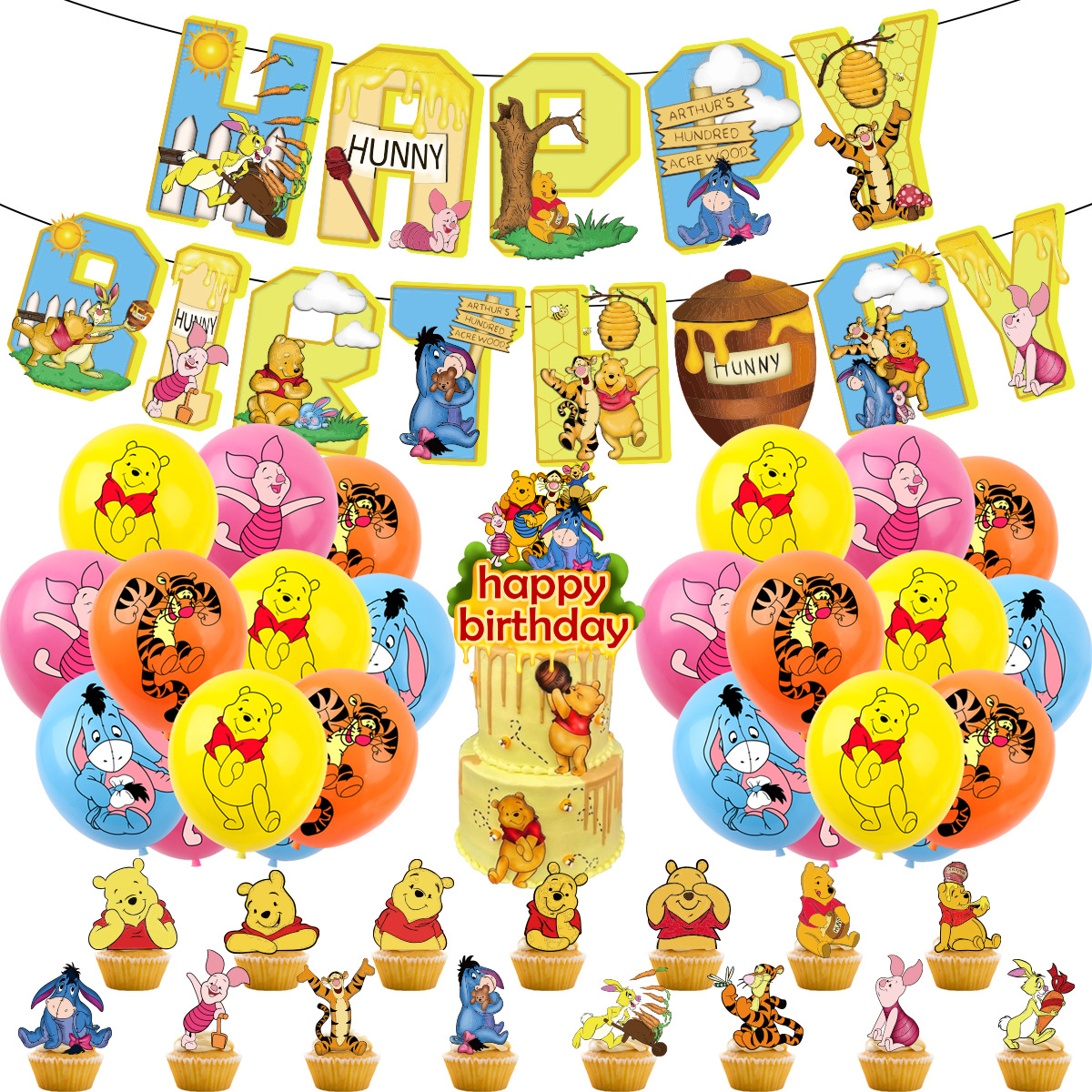 くまのちゃんモチーフ子供诞生日パーティー用品フラッグバナーラテックスバルーンケーキ挿し饰りセット