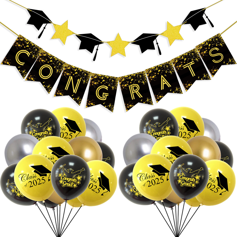 卒業シーズンのテーマパーティー用品フラグバナーバルーンCong Rats卒業シーズン会場装飾セット