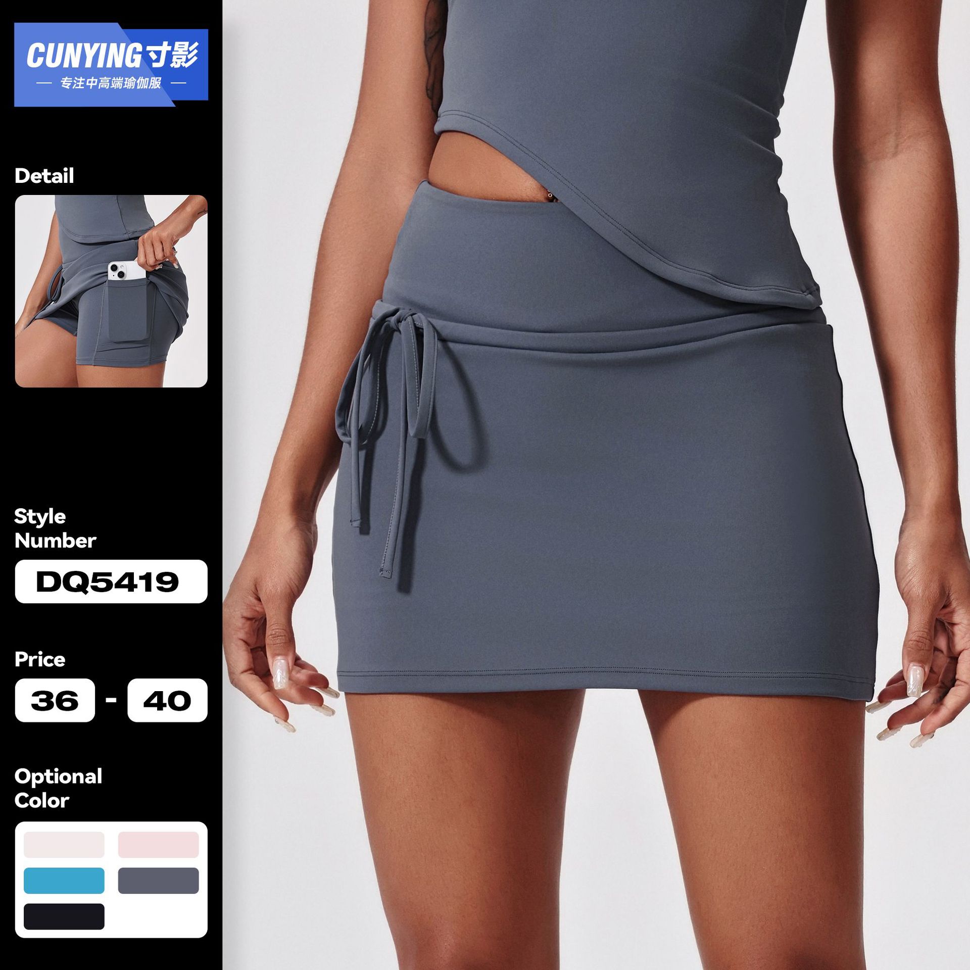クロスボーダー2点セット裸感スポーツワンピース美背防走光レギンスアウトドアランニングフィットネステニススカート