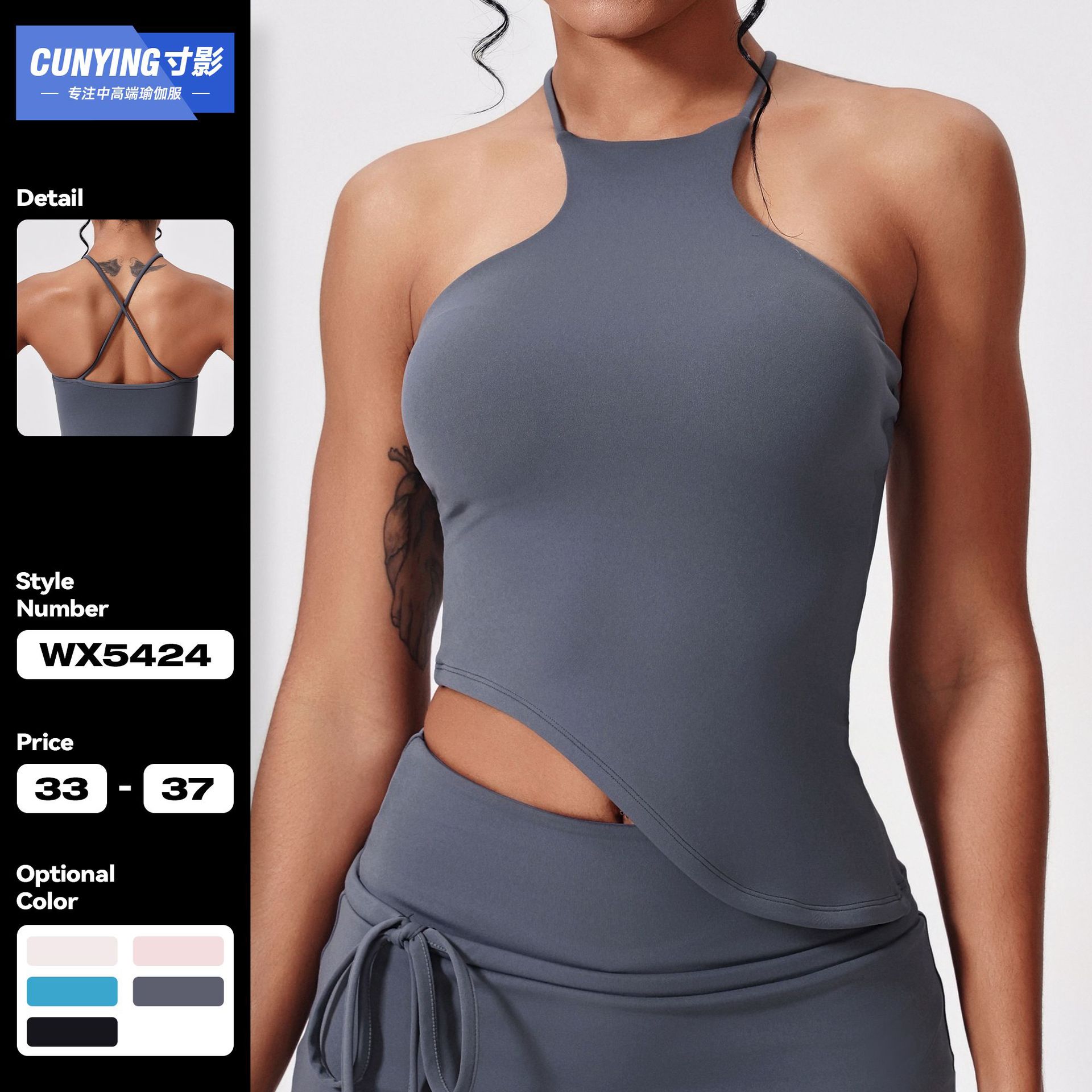 欧米風クロスボーダー新作ホルターネックブラ、細ストラップ、ホルターネックデザイン、独立したデザインのインナー、フロントプリーツ、シェイプアップ、スポーツ、美背