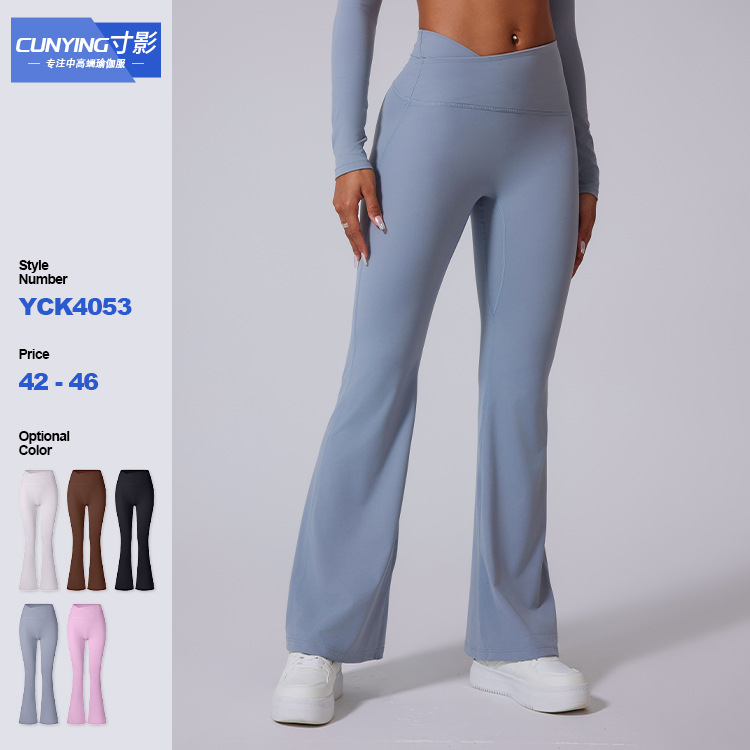 ヨーロッパとアメリカのクロスボーダーの新しいスタイルのマイクロフレアパンツ、起毛テクスチャードハイウエストヨガパンツ、クロスシェイプフレアパンツ