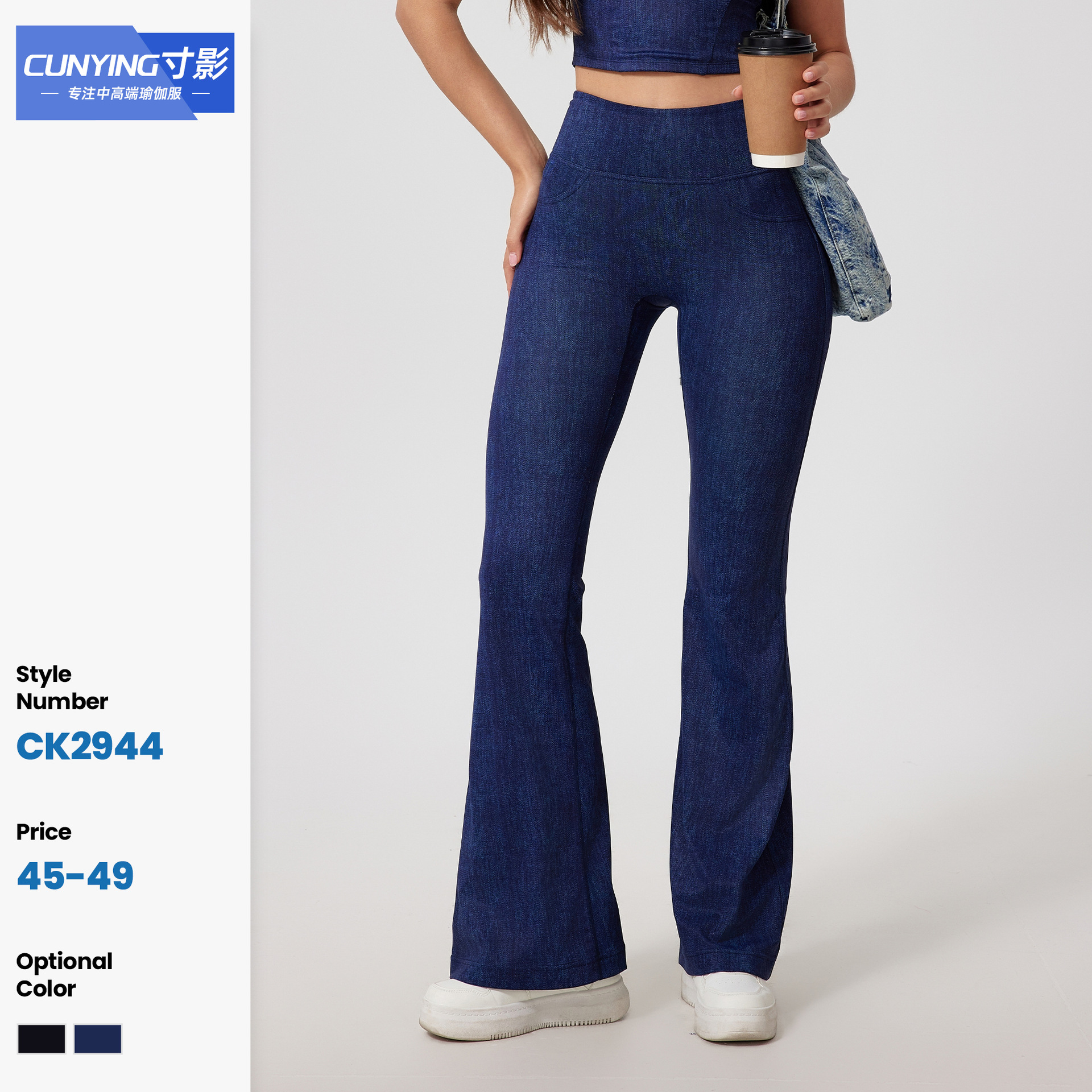 Insクロスボーダー新型欧米スポーツデニム長ズボンセクシー高腰無痕裸感ヨガラッパズボン蜜桃ズボン