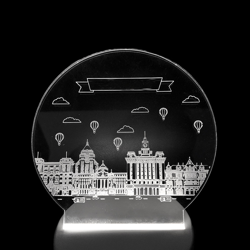 メーカー直供アクリル有機ガラスランプled都市風景漫画立牌レーザー印字彫刻