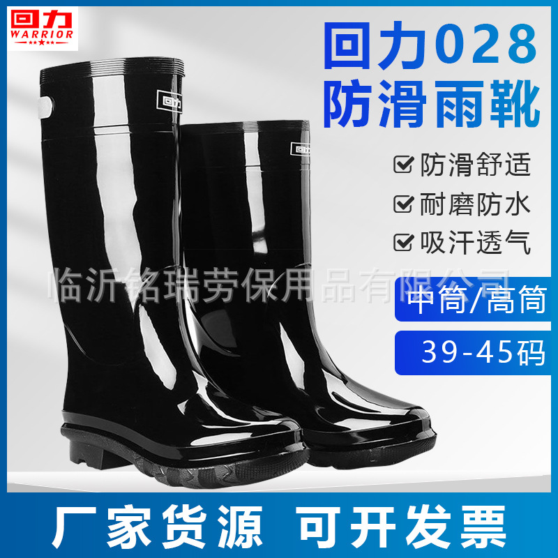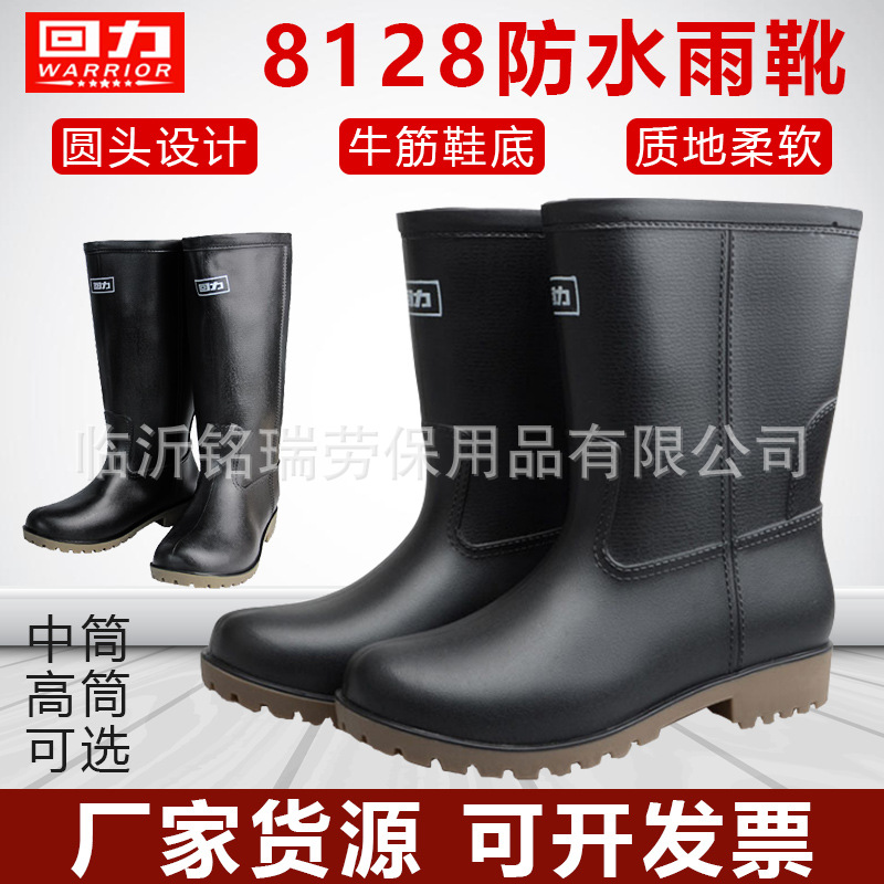 回力雨靴釣果男工鉱用滑り止め耐磨耗雨靴反射条付き労働保中筒高筒黒水靴