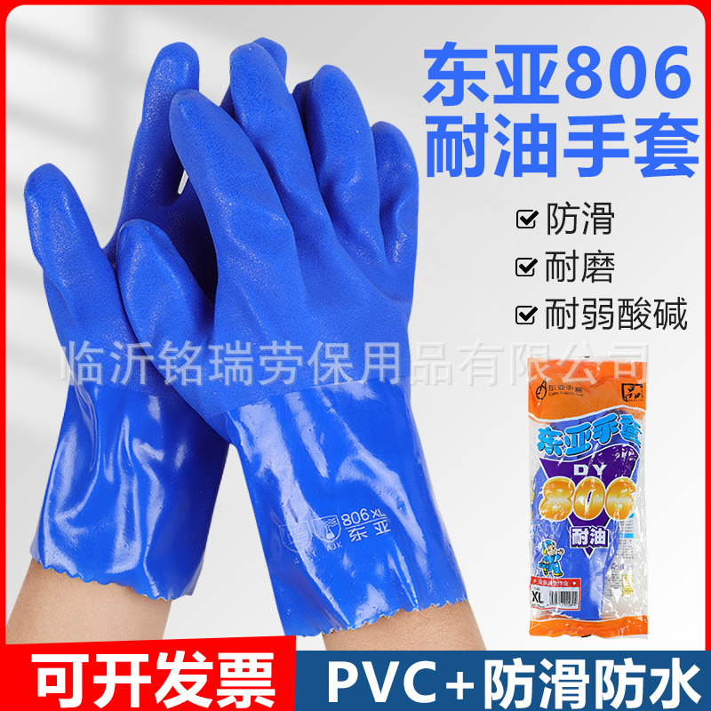 東アジア806耐油手袋耐酸アルカリ手袋厚い耐摩耗工業浸塑ゴム手袋労働保護手袋