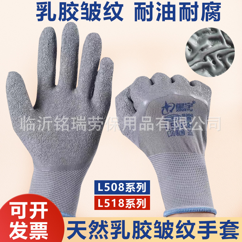 卸売り星宇労保l508ラテックスしわ手袋l518滑り止め耐摩耗性通気浸糊工事現場防護手袋