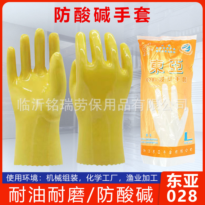 东アジアなめ28绵毛浸塑手袋pvc防水耐油性酸アルカリ滑り止め厚手化学工业労働保护手袋