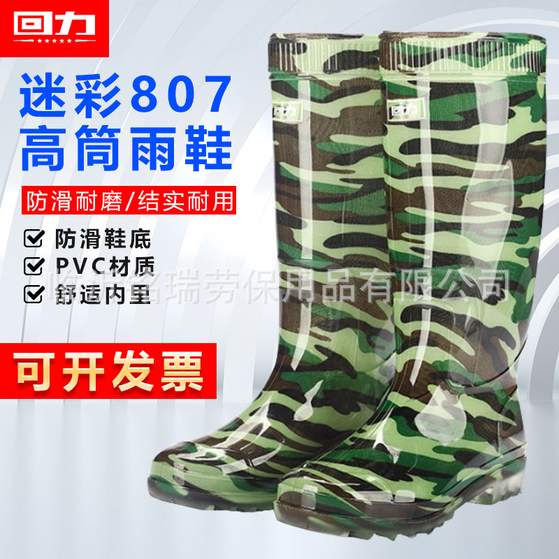 回力807高筒迷彩雨靴成人プラスチック雨靴高助雨靴防水滑り止め耐摩耗性労働保水靴
