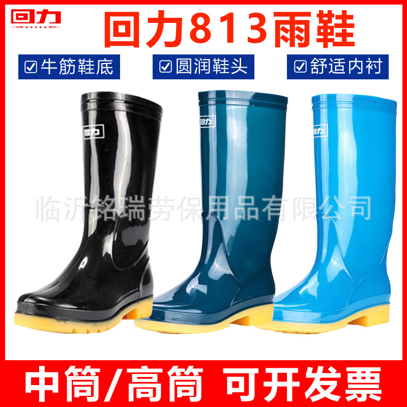 上海回力813高筒中筒雨靴807高筒靴滑り止め耐摩耗性酸アルカリ牛筋底カラー靴