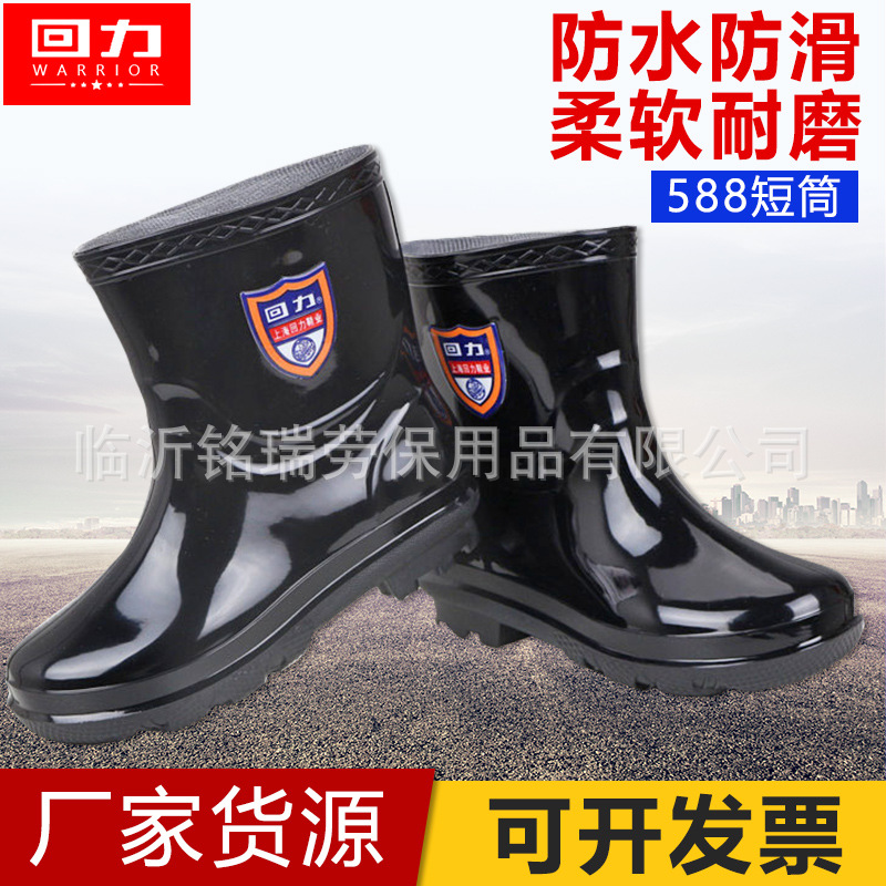 回力588ショートブーツ男女防水滑り止めpvc耐摩耗性酸アルカリ低筒雨靴労働保護ブーツ