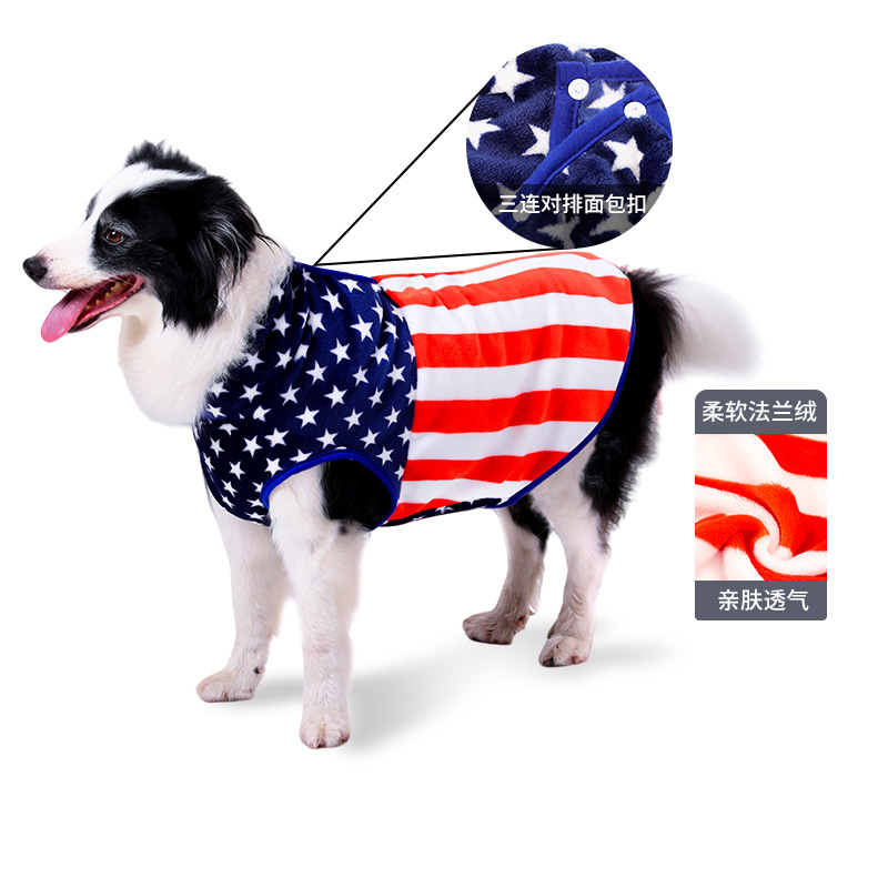 国境を越えた新しいフランネル星条旗犬猫服ペット保温家服ベストパジャマ