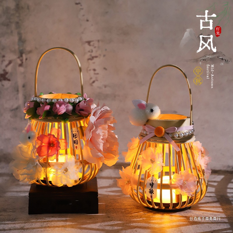 Chuangyao 中秋節子供のポータブル古代スタイルのウサギのランタン装飾ペンダント幼稚園手作り diy ランタンペンダント