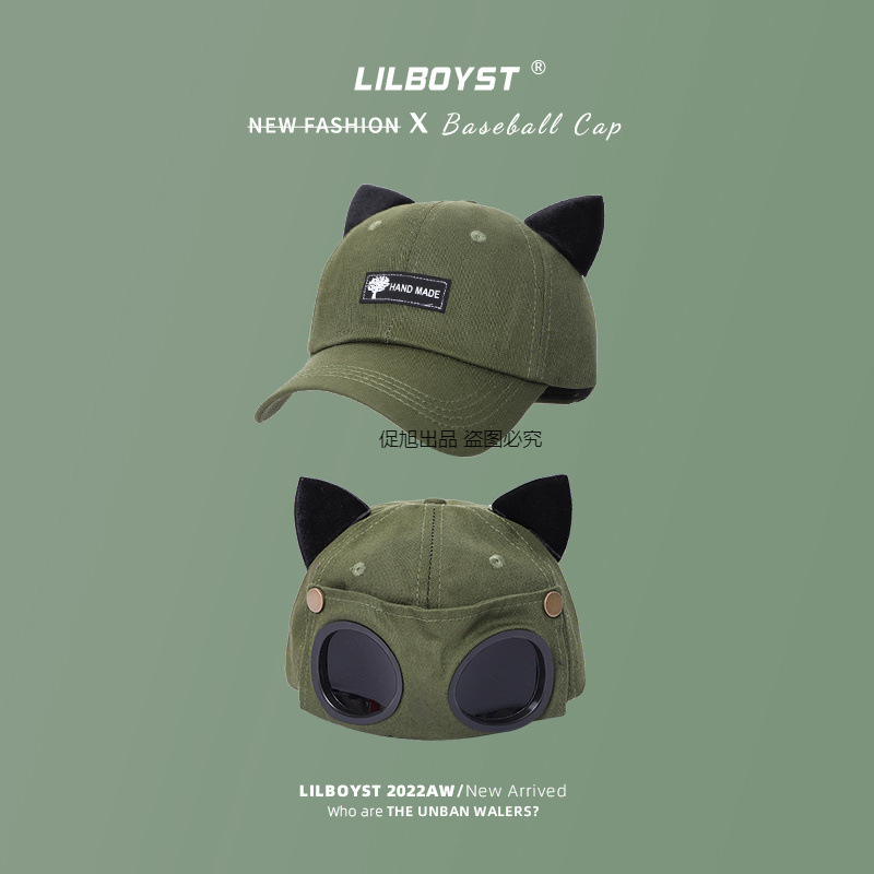 かわいい猫の耳のパイロットの帽子のメガネの野球の帽子の女性のサングラスのアヒルの舌の帽子の男性の大きい頭は潮のブランドの韓国版を囲みます。