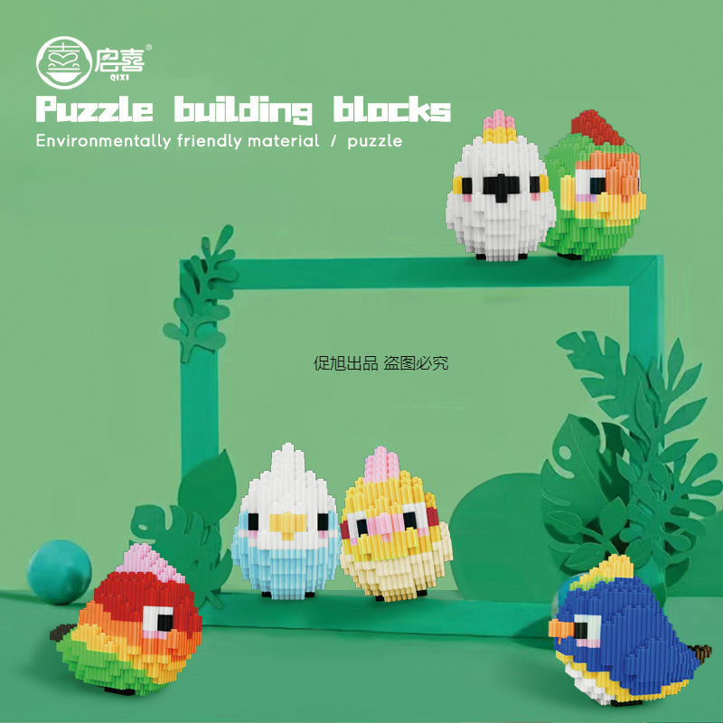 クリエイティブな新製品、ワンショット、6羽の鶏とオウムのシリーズの積み木、男の子と女の子向けの減圧幾何学的立体おもちゃ