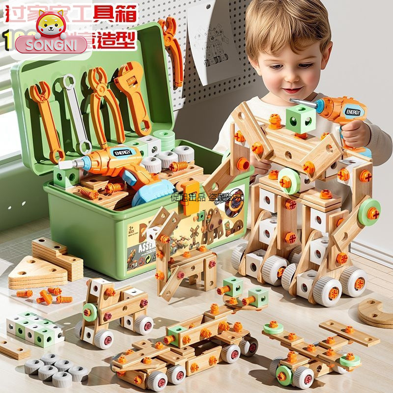 クリエイティブな新しい教育用子供用ツールボックス、組み立て済みネジのおもちゃ、ハンドドリルの組み立てと分解の完全なセット