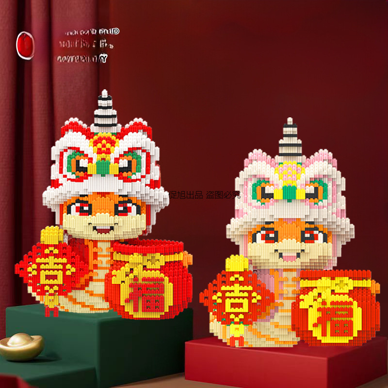 新しいクリエイティブパズル干支蛇年マスコットビルディングブロック小粒子組み立ておもちゃクリスマスオーナメント