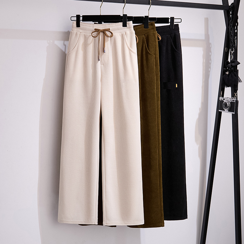 200/300斤の超大きいサイズの太ったmmの広脚のズボンの秋の高腰のまっすぐなズボンのゆったりしている薄いズボンのカジュアルなズボン