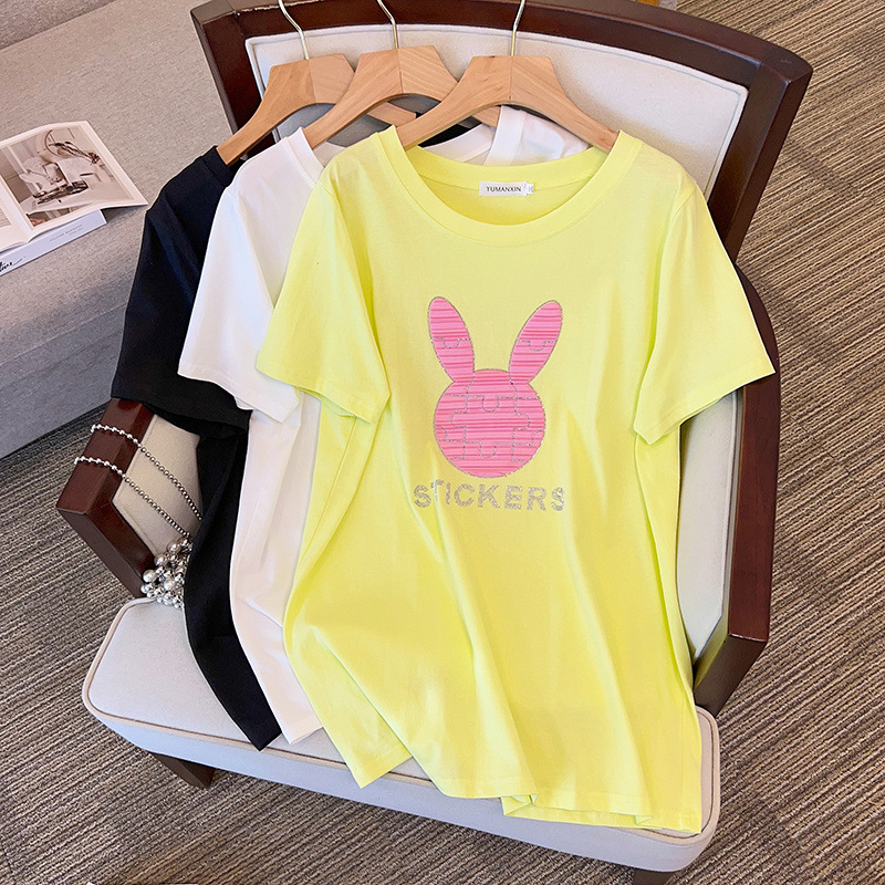 ホットドリルのファッションの新しいプラスサイズの痩せたゆるい中の半袖tシャツの女性200/300/350斤