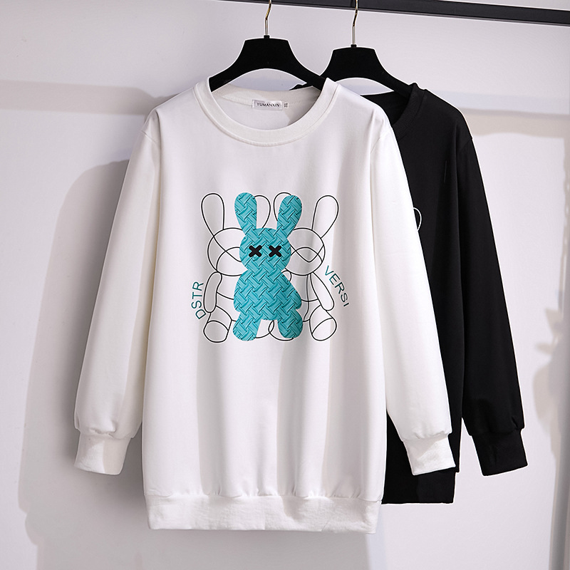 丸襟新加肥加大コードがやせてゆるい中長半袖tシャツ女200/300/350斤6356