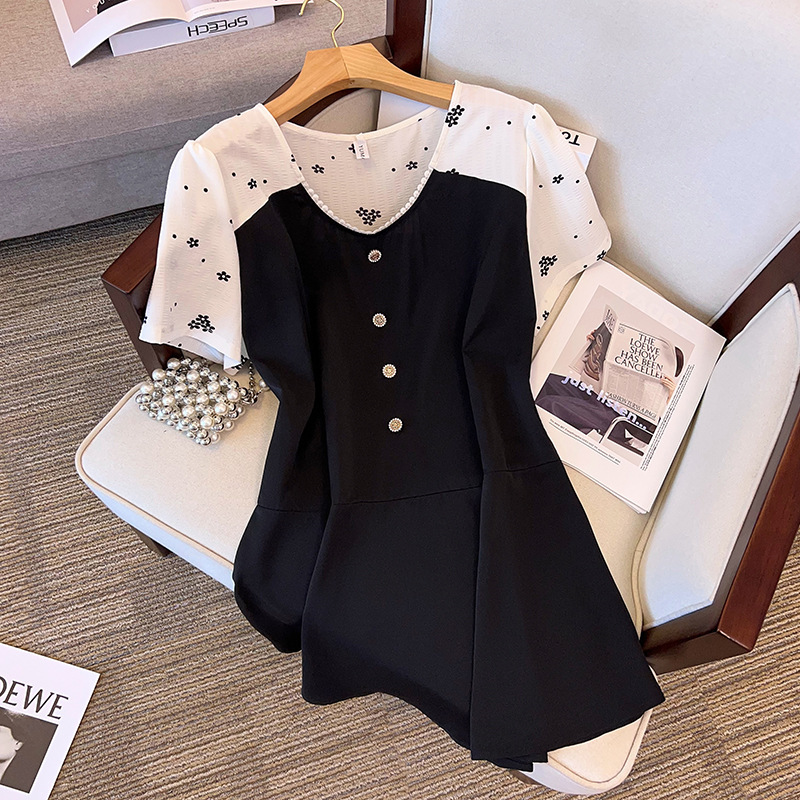 バスト150/170特超大サイズ女装シャツ太ったmm200/300ゆるい中丈半袖シャツ7166