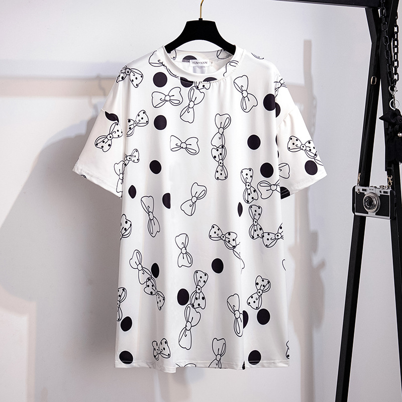 牛乳糸大サイズ女装300斤太ったmm加肥大号ゆるいカジュアルプリント上着200-350斤