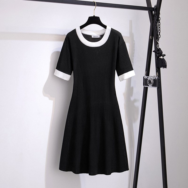 特大サイズ女装氷糸メリヤス丸襟ワンピース夏太ったmm痩せ中ロングスカート200/300斤8183
