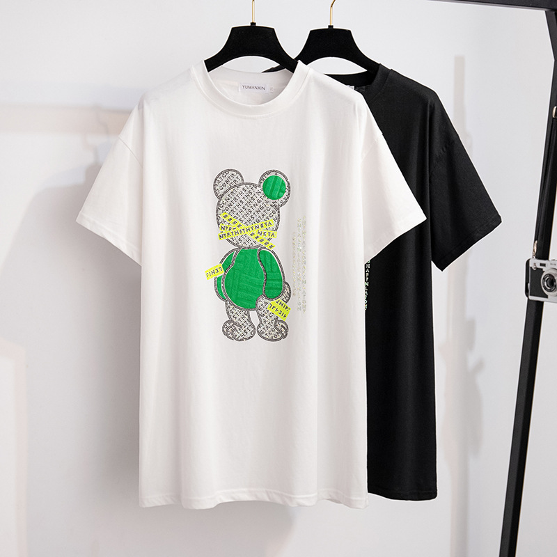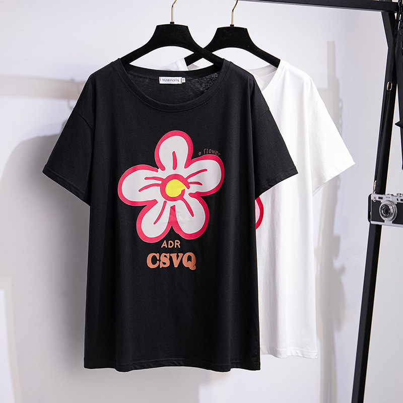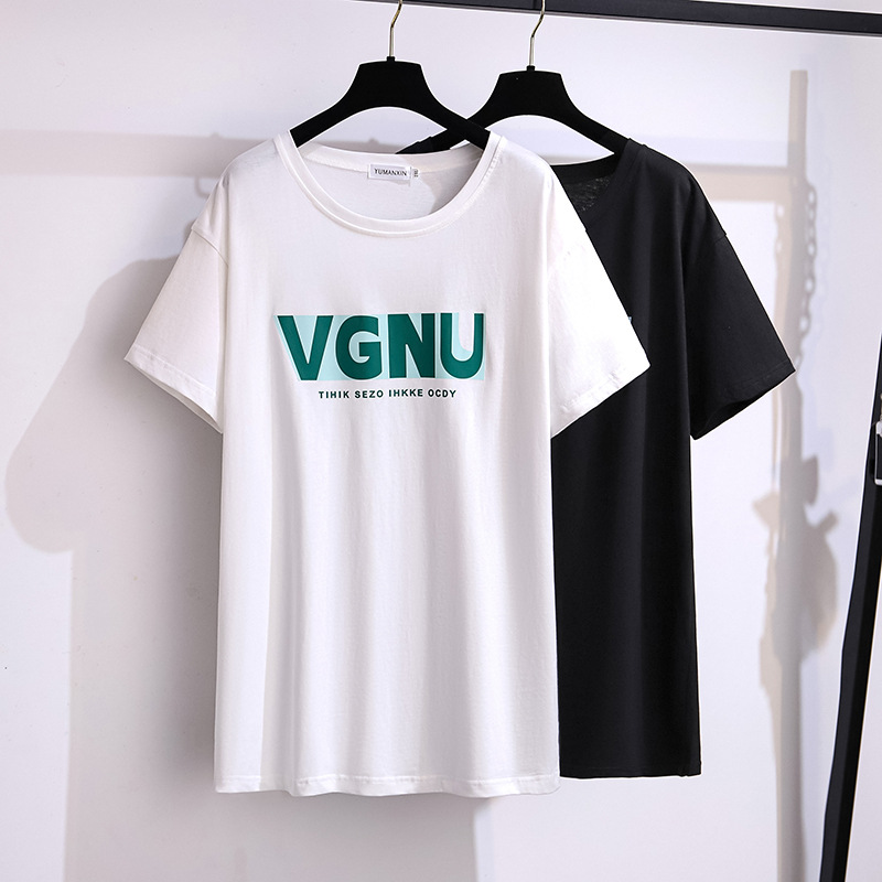 ホットドリルの新製品は太って大きくなって痩せてゆるい中長の半袖tシャツの女性200/300/350斤6385