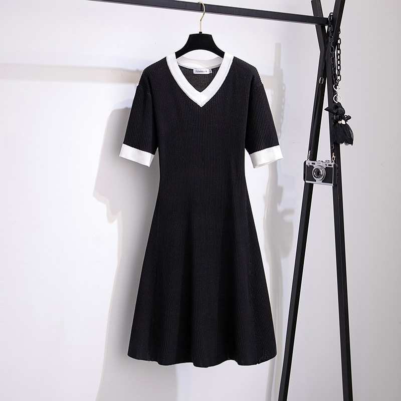 プラスサイズの女性のアイスシルクニット V ネックドレス夏脂肪 mm 痩身ミッドレングススカート 200/ 150kg