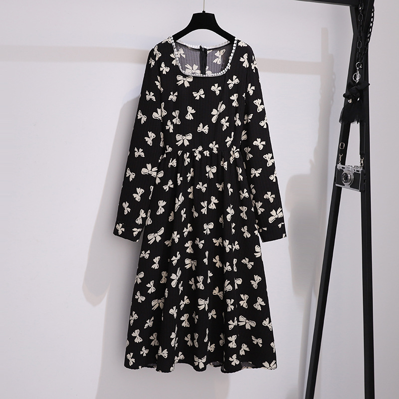 300/350斤の大きいサイズの婦人服の秋の新型のゆったりしていてやせているファッションの長いワンピースの200/280斤の6398斤