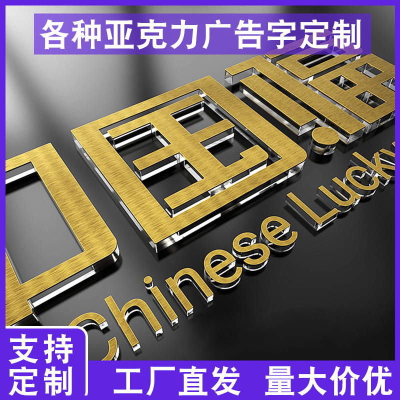 アクリル水晶字背景壁3d縦型看板製作門口フロント標識立体字室内看板