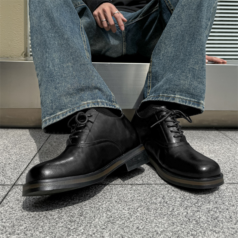 メンズ英国風ラウンドトゥ高めダービーシューズローカットダービーシューズ2025春新作カジュアルレザーシューズ