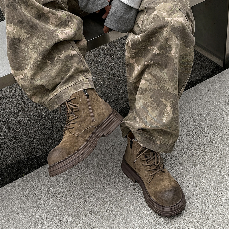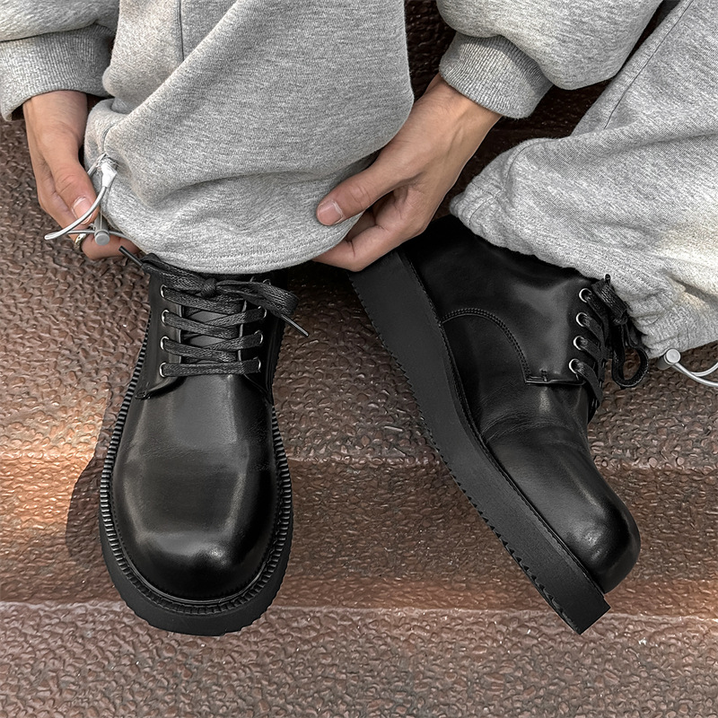 ミッキーダービーシューズメンズ身長増加革靴カジュアル厚底ルバーブブーツ通気性作業服ロートップマーティンシューズ 2633-J